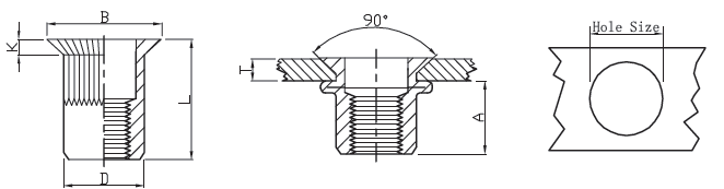 Domov / Produkty / Slepé nýtové ořechy / CONTERSUNK HEAD ROUND BODY NICET NUTS / CONTRESUNK HEAD Knurled Body nýtová ořechy / Ocelové pulty hlavy kyčliné tělové nýtové ořechy uzavřené koncové typ